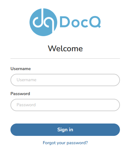 To log in, you must have a valid username and password. These are set when your DocQ user account is created.