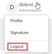 To log out of DocQ, click on your username in the top-right corner of the screen to open the user menu.